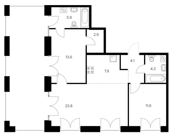 В проекте представлены эксклюзивные планировки с частными террасами значительной площади.