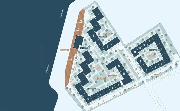 Набережная: Собственная благоустроенная набережная по периметру острова с зонами для прогулок и отдыха у воды.